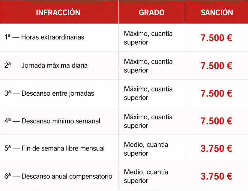 El artículo 37.1 del Estatuto de los Trabajadores garantiza un descanso mínimo de día y medio ininterrumpido, acumulable en períodos de hasta 14 días. Los datos analizados por la Inspección de Trabajo muestran una flagrante vulneración de este derecho: